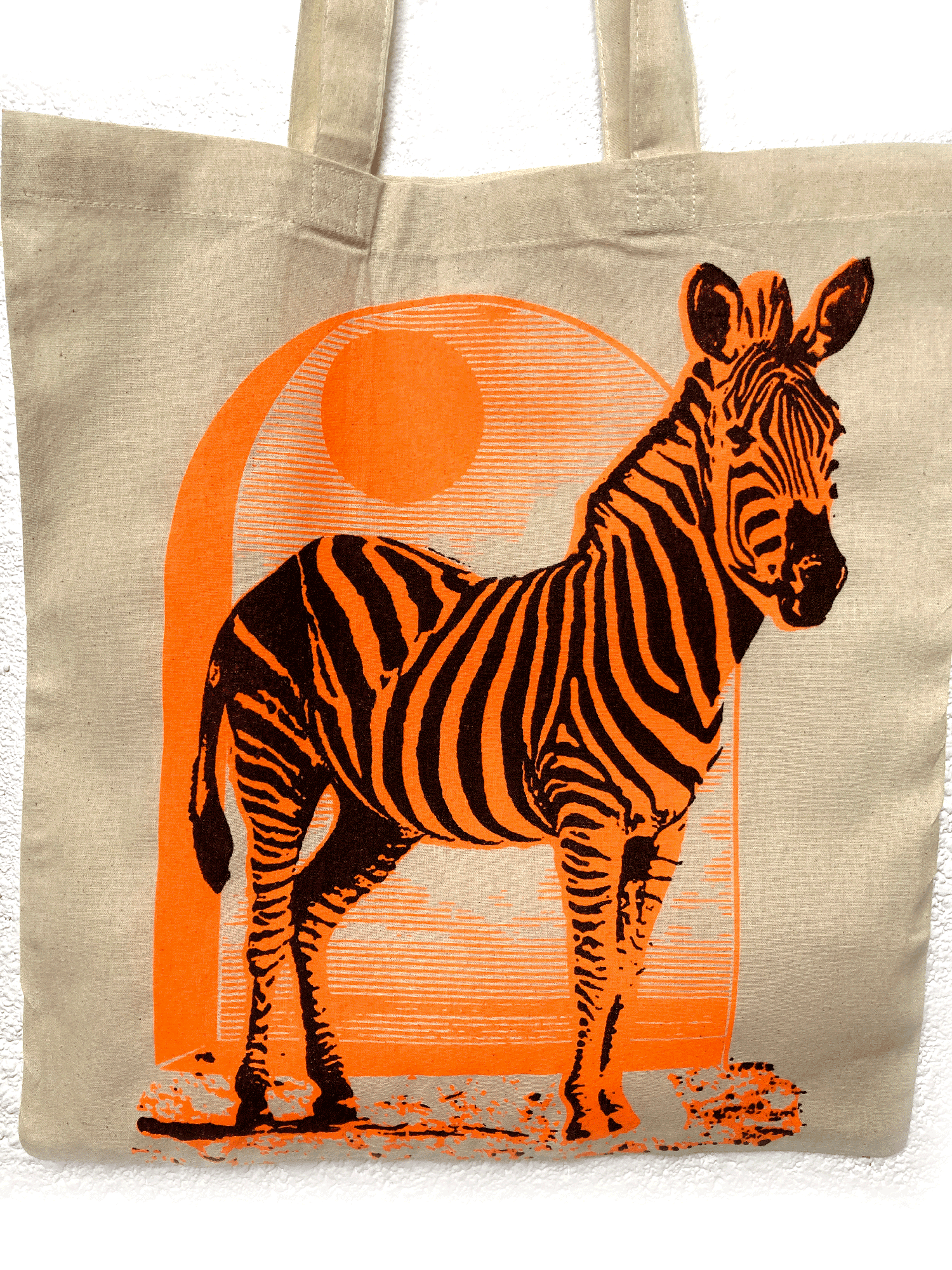Visuel en Sérigraphie d'Art devant "Zèbre" en encre FLUO ROUGE